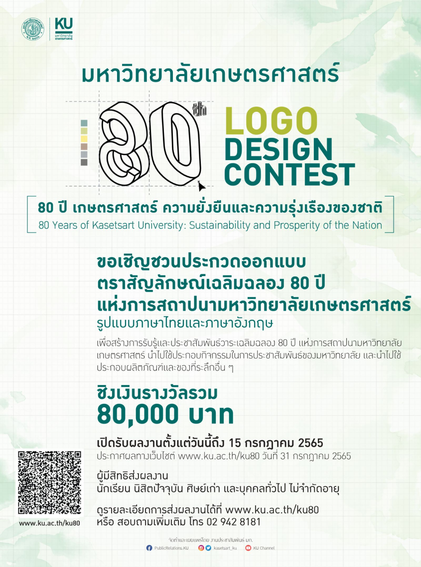 ออกแบบตราสัญลักษณ์ เนื่องในงาน “เฉลิมฉลอง 80 ปี แห่งการสถาปนามหาวิทยาลัยเกษตรศาสตร์” แบบมีส่วนร่วมเพื่อใช้เป็น